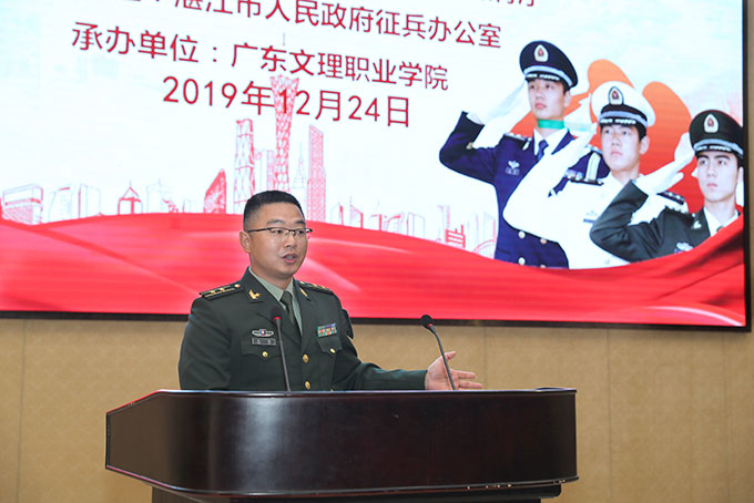 廉江市人武部副部长毛伟介绍了我国国防建设取得了飞跃成果,接受了大学生们对入伍的政策的咨询。(文/张志成 图/钟文 编辑/钟文 审核/李贵龙)