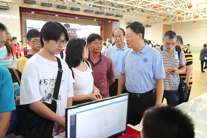 在迎新现场院长郝世栋等学院领导向工作人员详细了解迎新工作进展情况,代表学院对各部门在迎新工作中辛勤付出表示感谢。领导们还与新生及家长亲切交谈,感谢家长把孩子送到广东文理学习,学院将会为学生创造越来越好的学习生活环境,同时鼓励新生尽快适应校园生活,潜心学习、健康成长。