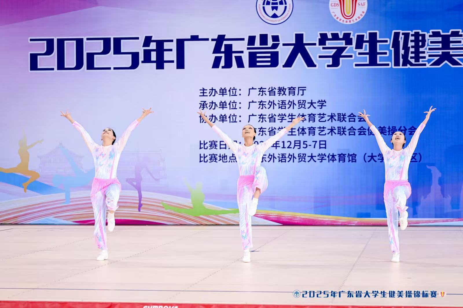 2025年广东省大学生健美操锦标赛于2025年12月5日—7日在广东外语外贸大学大学城校区体育馆举行。本次赛事由广东省教育厅主办,广东外语外贸大学承办,广东省学生体育艺术联合会、广东省学生体育艺术联合会健美操分会协办。共有来自全省各普通高校52个参赛单位及965名运动员参加本次比赛。