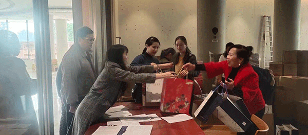 12月23日上午,学院工会为全体教职工发放春节福利。领取福利的教职工脸上洋溢着幸福的笑容,纷纷对学院的关怀表示感谢,并表示在新的一年里将以更加饱满的热情投入工作之中,助力学院教育教学事业的蓬勃发展。
